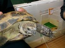 かめ吉は30度以上の暖かい場所が好きで、寒いと餌があっても食べないとのことでした。