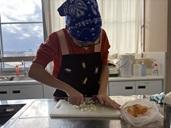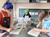 材料の切り方や、調理器具の扱い方などについて学習しました。