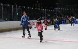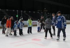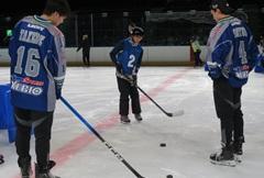 にて、行われました。東北フリーブレイズ選手に協力してもらい、スケートの体験を楽しむ