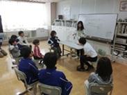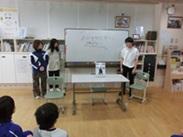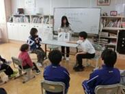 高学年の児童が、低学年の児童に向けて 本の読み聞かせの会を開いて
